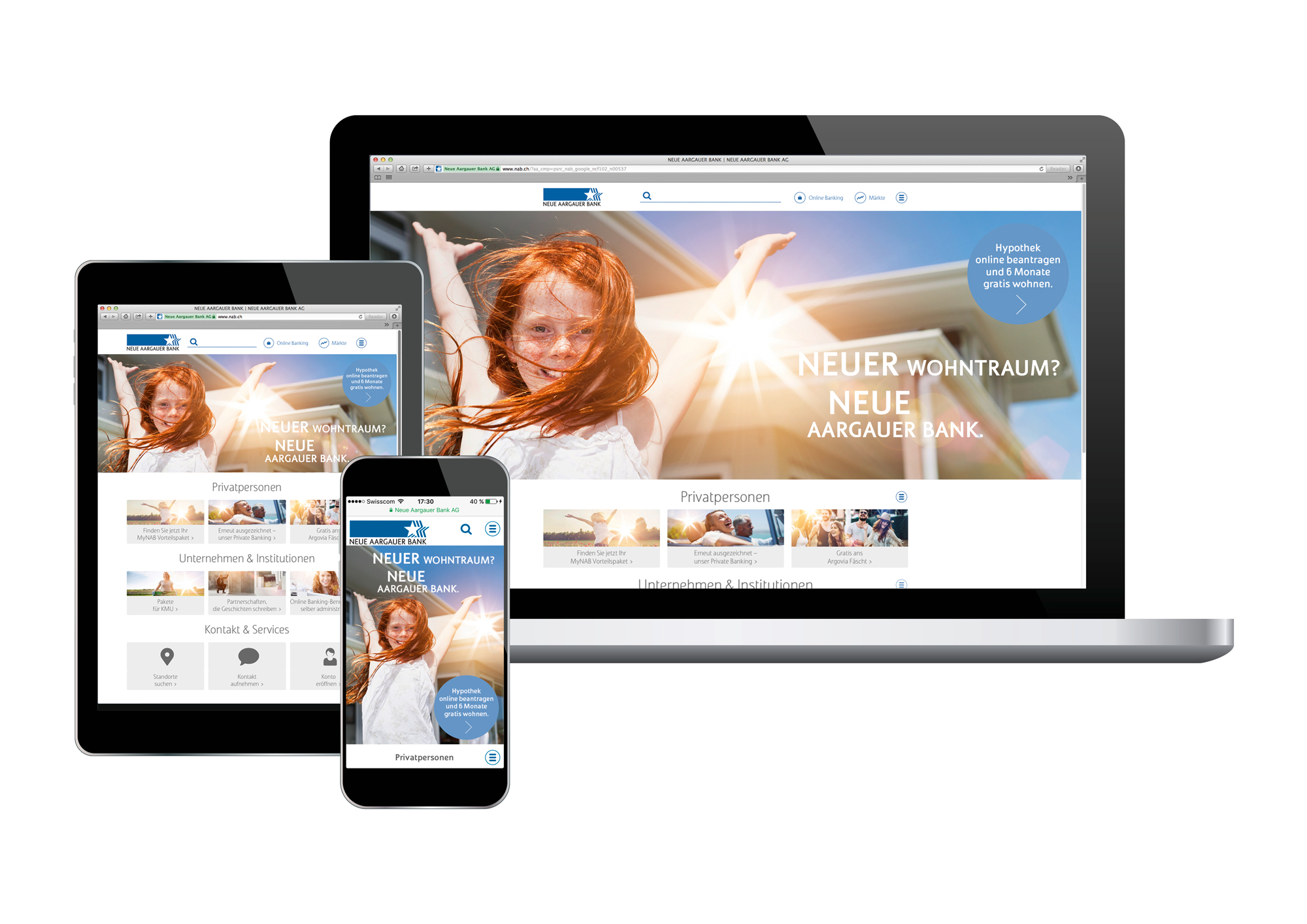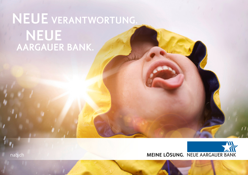 Die Gesamtkampagne der NEUEN AARGAUER BANK umfasst alle Werbemittel: Von TV-/Kino-Spots, Plakaten, Anzeigen über Produktebroschüren, Angebotswerbung, Internetauftritt bis hin zum gesamten POS-Auftritt.