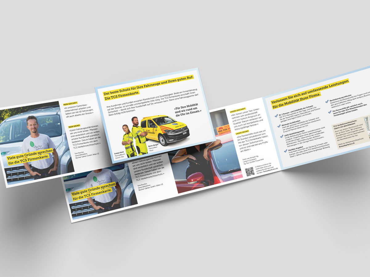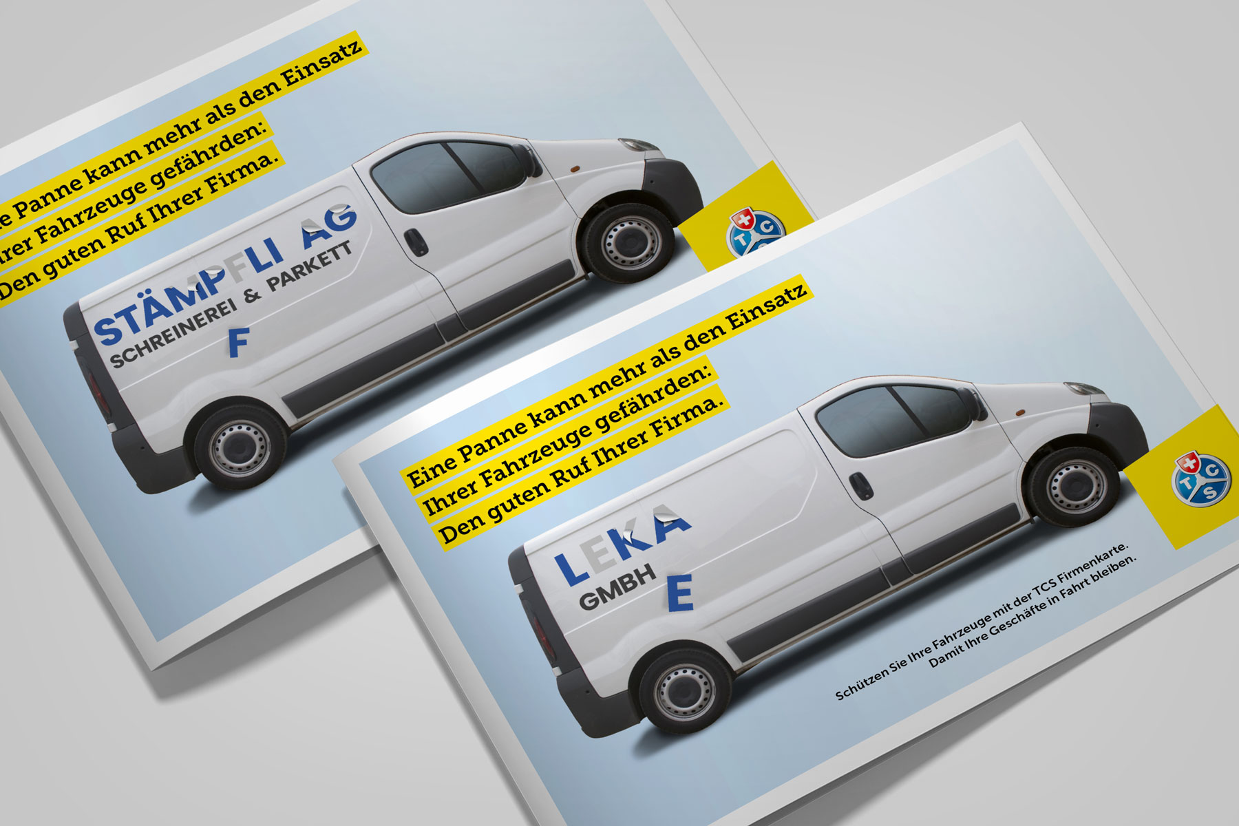 Der TCS ist nicht nur für Privatpersonen und ihre Autos die Pannenhilfe Nummer 1 der Schweiz. Der Verein mit 1,5 Mio. Mitgliedern bietet seine Dienste auch für die Fahrzeuge und Transportdienstleistungen von KMUs an – mit der TCS Firmenkarte. Um dieses Angebot bekannter zu machen und neue Firmenkunden zu gewinnen, entwickelte Wirz ein Akquisitionsmailing und Videos mit Testimonials.