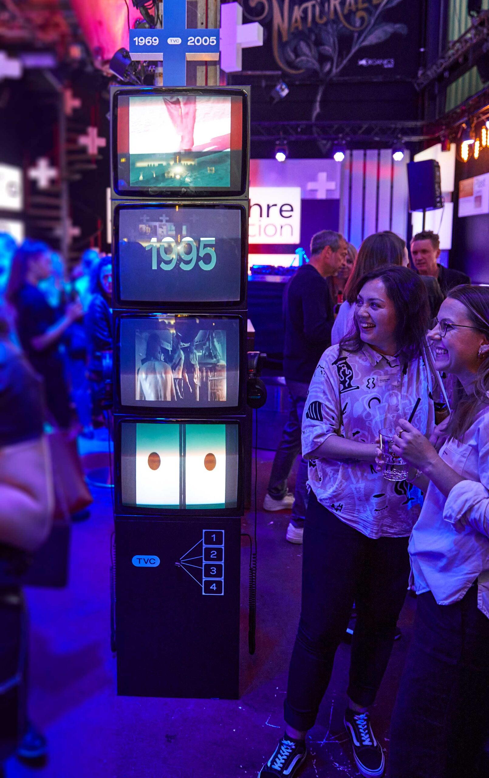 DJ Samuel Gmür, der auch schon die Sounds für die Migros Ice Tea Beats kreierte, sorgte mit einem erfrischenden Musikmix aus den 60ern bis heute für gute Stimmung. Eine Installation mit kultigen Advico-Plakaten lud zum virtuellen Eintauchen und Entdecken ein und auf einem Turm aus Oldschool Fernsehern flimmerten die besten TV-Spots aus vier Dekaden.