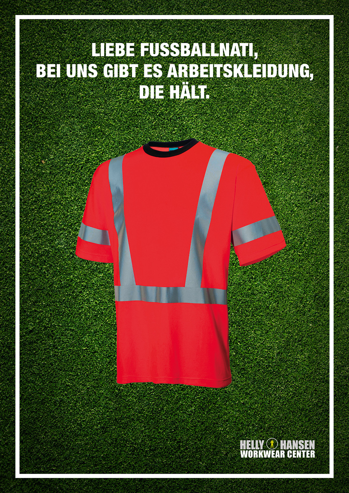 Das grosse Thema rund um das Spiel Schweiz gegen Frankreich: die Trikots der Schweizer Nationalmannschaft. Die Arbeitskleidung der Fussballspieler riss gleich mehrfach. Darauf hat das Helly Hansen Workwear Center mit Social Media Posts, Facebook Ads und Postern schnell und charmant reagiert. Denn bei Helly Hansen Workwear gibt es Arbeitskleidung, die wirklich hält.